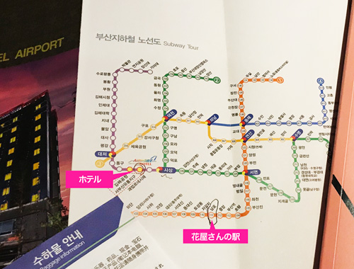 フロントの、優しいアジュンマに教えてもらった『ナンポ(南浦洞)』という駅に向かいます。