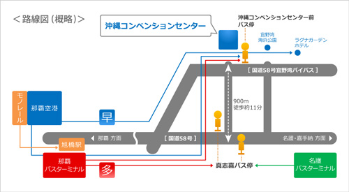 ・那覇バスターミナル→沖縄コンベンションセンター前バス停まで約40~60分(540円)
