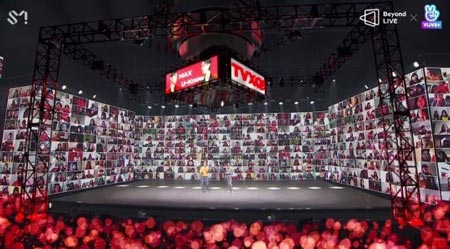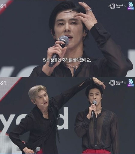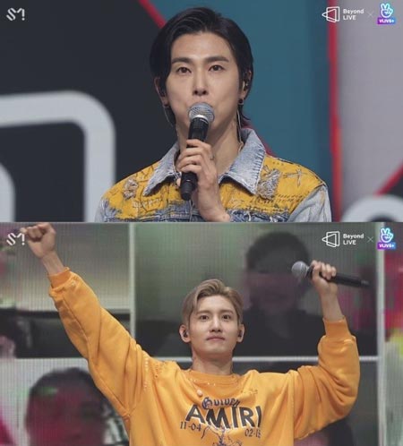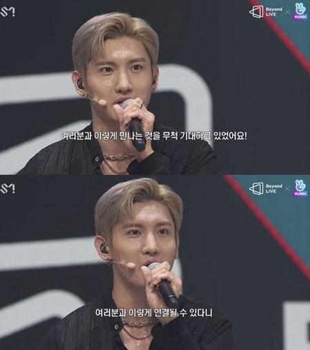 チャンミンは、日本語で「たとえ離れていても『Beyond LIVE』を通して皆さんとこうして繋がることができるなんて本当に良い時代です」と話した。