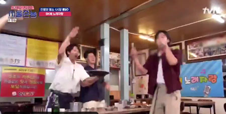 カラオケバトルはジニョンさんとチーム組んでユノがまさかの秘密兵器の”ミロ”を熱唱のはての…〇〇!?ユノペンにとっては300点はイッてたユノのパフォ!最高♡