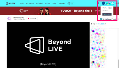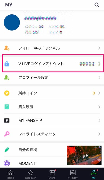 ●VLiveアプリのログインアカウントを同じにする必要があります。