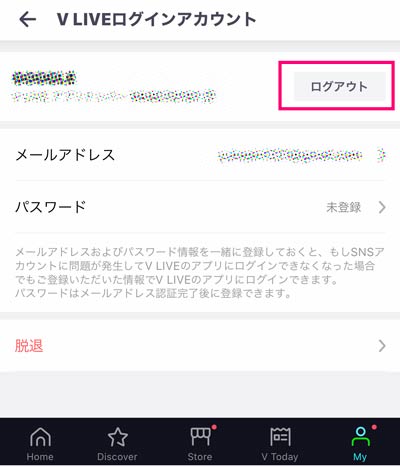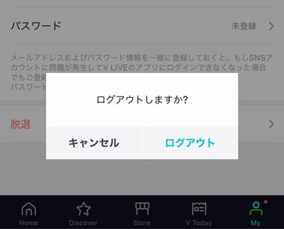 再度ログインする場合、VOD配布のVliveのアカウントでログインします。