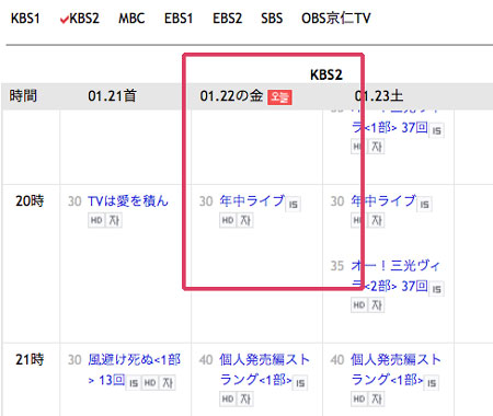 ユノ出演:『年中LIVE』本日(1/22)20:30KBS