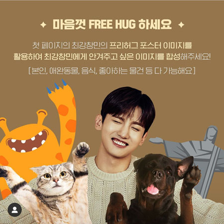 今チャンミンがのフリーハグポスターにチャンミンに作らせたいた某~聞いたことを合成して本人のSNSに載せてください! 🐱🐶