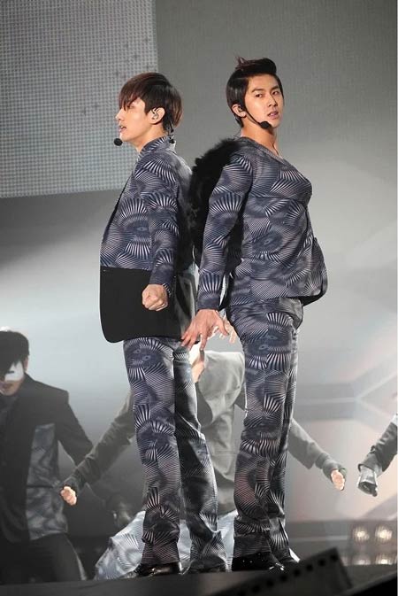 鐘の音とともに上空から現れたユンホとチャンミンの姿に、会場からは割れんばかりの歓声が鳴り響いた。2人はそのままワイヤーでメインステージへ移動し「Maximum」を歌い始めると、観客はさらに熱狂。
