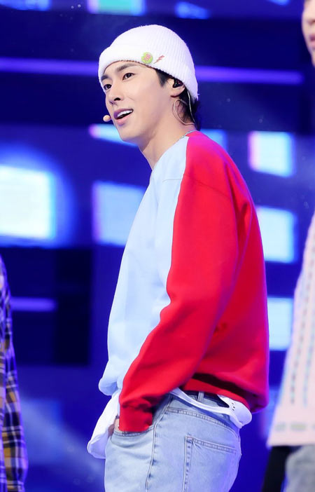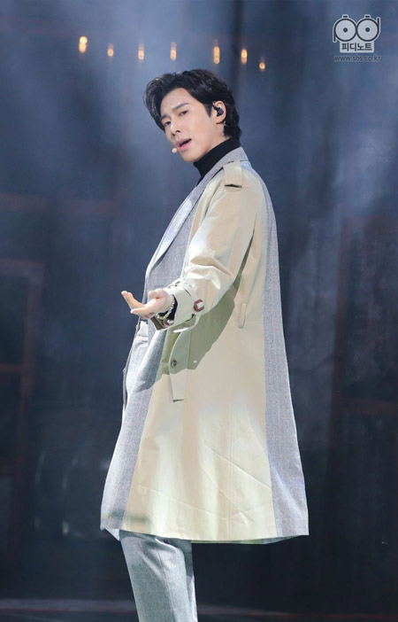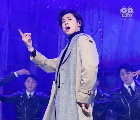 生のステージで歌うユノを