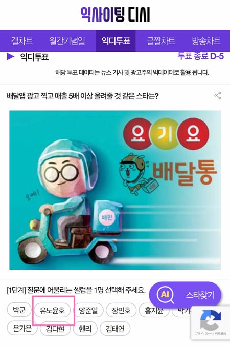 エキサイティングディッシュは11日から17日まで「個人のYouTubeチャンネルオープンするとすぐに、サブスクリプションを押すスターは?」というテーマで投票を行った。