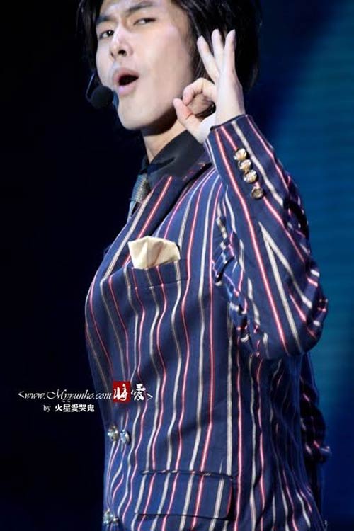 ▲punchline_stuntの方々と一緒のユノ、