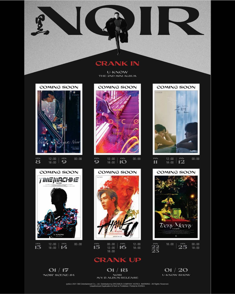 ノワール映画の主人公たちが「純情がありながらも激しく前に進む情緒が私と似ていると思った」というユンホは<ジョン·ウィック><キル·ビル><オールドボーイ>などの映画で参考にしたストーリーとミジャンセンについて話した。 「《ノワール》を準備しながら自分自身について再び知ることになった」というユンホは「情熱マン」イメージに映ることに対する内心と共に、このアルバムに含まれた自分のメッセージに対する慎重な説明まで付け加えた。 一方、タイトル曲「ThankU」以外の収録曲にもそれぞれのジャンルを付与し、ミュージックフィルム、ポスターなどを公開したユンホは「シネ21」とのインタビューで、彼の普段の映画の好みも告白した。