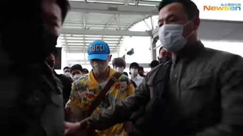 EXOチェンはマネさんとSP1人 に挟まれて出国。