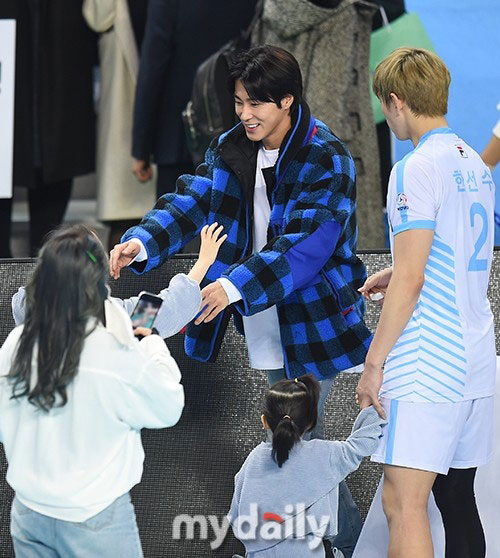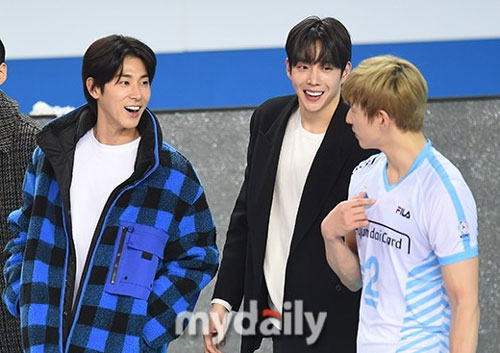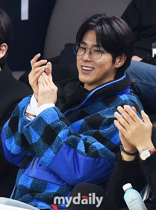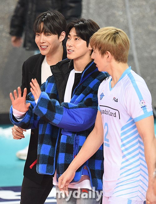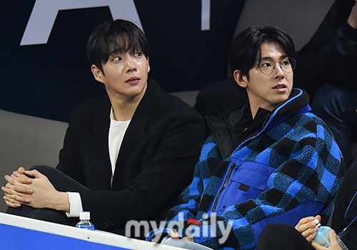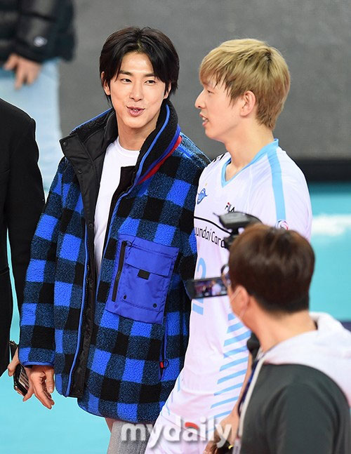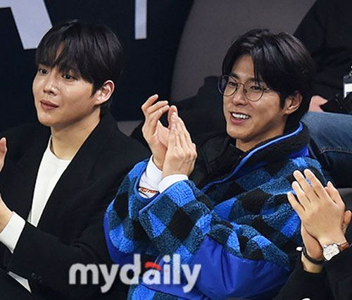 東方神起のユンホと俳優カン・ドンホが14日午後、仁川(インチョン)桂陽(ケヤン)体育館で行われた「トドゥラム 2019-2020 V-リーグ」男子の部の大韓航空 対 KB損害保険の試合を観戦し、友人のハン・ソンス選手を応援した。