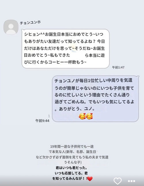 ハン・ソンス氏の奥様のお誕生日にユノが贈ったメッセージ。