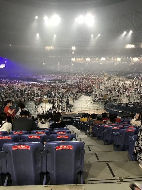 ドーム初日、トロッコライン脇のアリーナです。嬉しい😂メッセージ見てくれるといいなぁ。今日は2枚仕込み‼︎