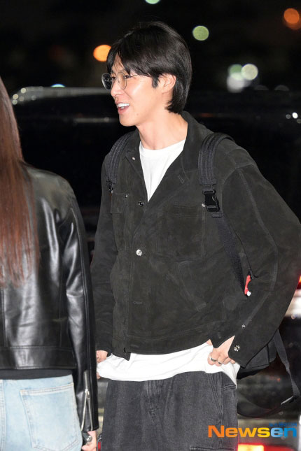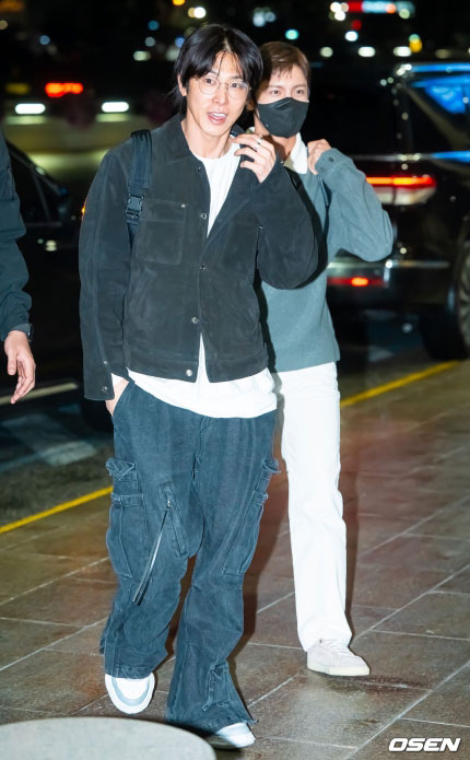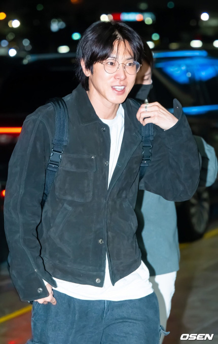 ユノ・ユンホはこの日ジーンズにブラックジャケットでダンディな空港ファッションを演出した。彫刻のようなビジュアルも目立った。