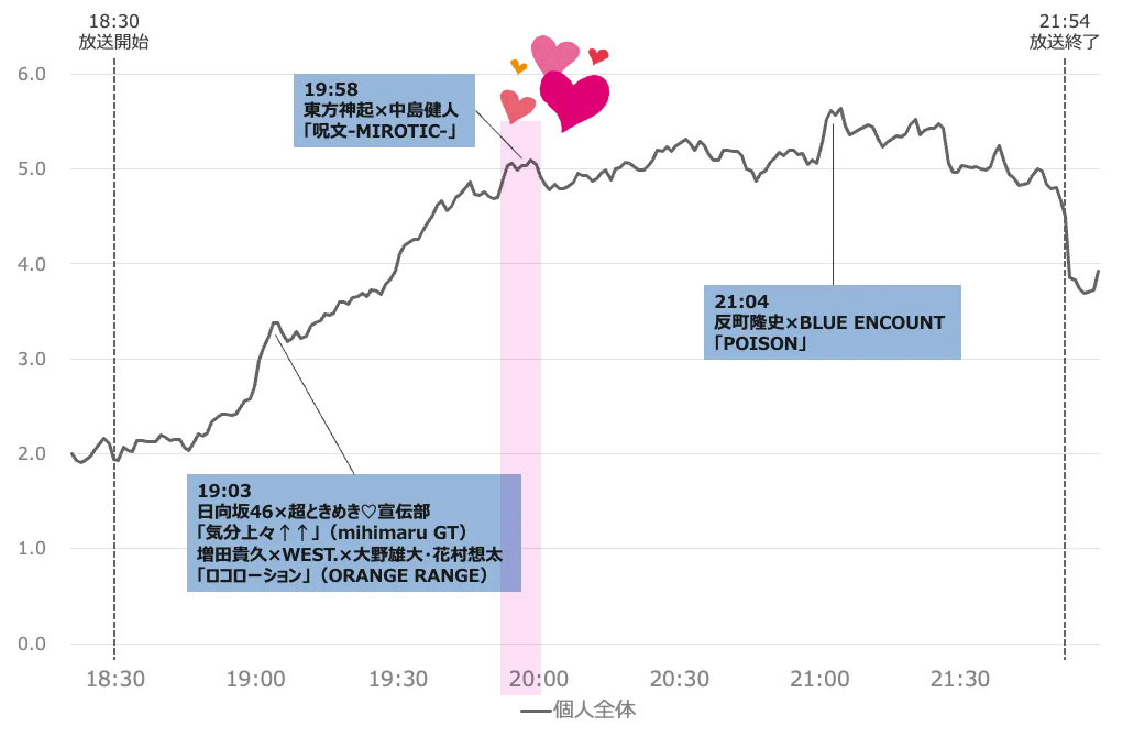 7月3日の放送では、序盤は「平成→令和 リバイバルヒットメドレー」のコーナーが放送され、19時以降はコラボやカバー曲を中心とした構成でした。