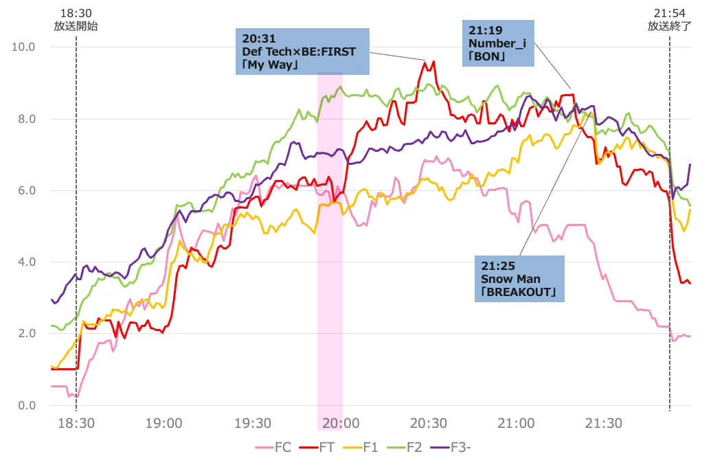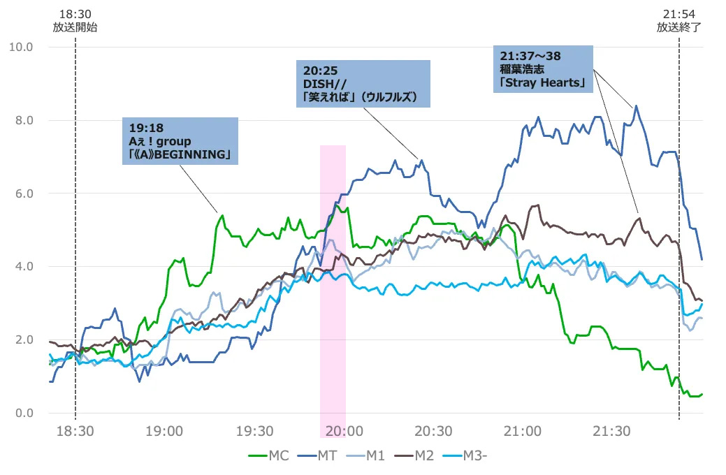 メンズも女性もキッズも視聴率グラフも