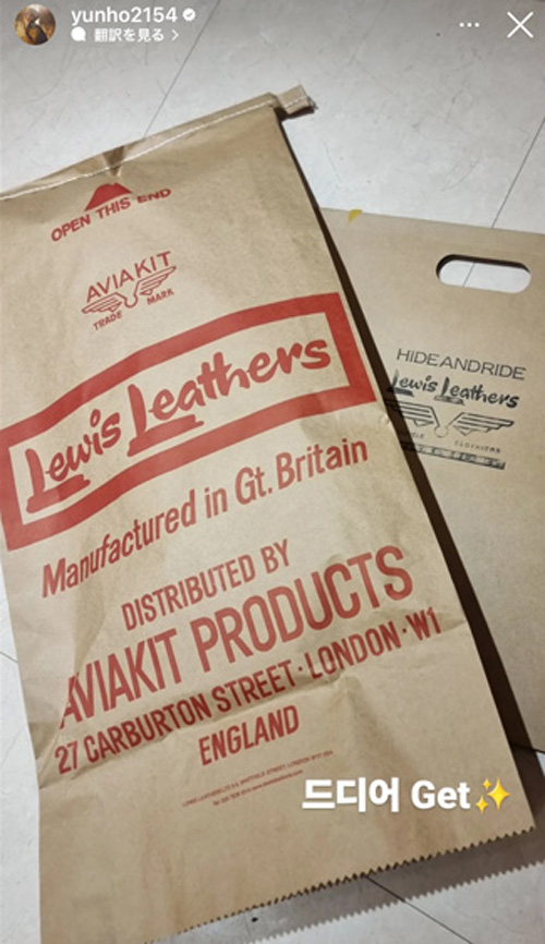 帰国後にインスタストーリーアップした革ジャン『Lewis Leathers』