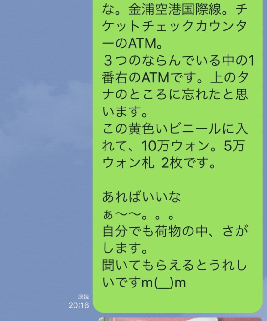 10万ウォン(日本円で約1万円)は残ってるはずだけど