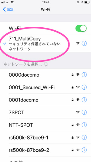 ココからは、先程の【セブンイレブンマルチコピー】アプリを使ってWi-Fiで繋げていきます。