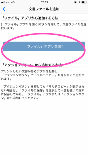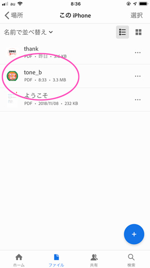 ▼ファイルアプリ(先程のPDFのアプリ)タップで自動に繋がります。