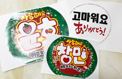 ”うちわ”や”メッセージペーパ””オリジナルグッズ”などを両手いっぱい抱え、