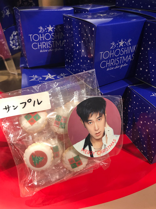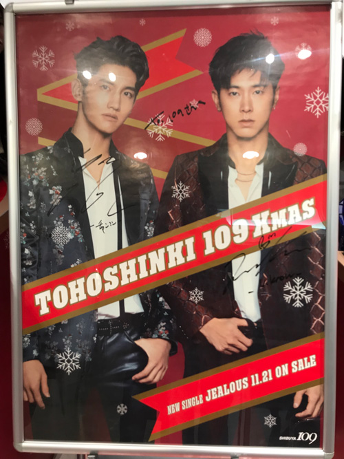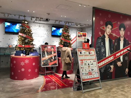 クリスマスツリーとか2人のパネル、109さんへ のサイン入りのパネルとコラボグッズが所狭しと並びます。