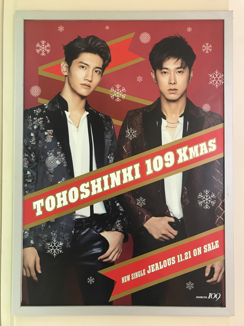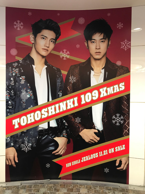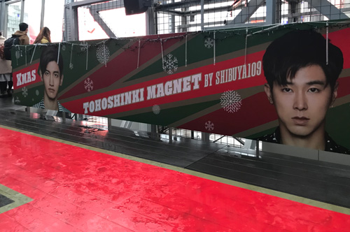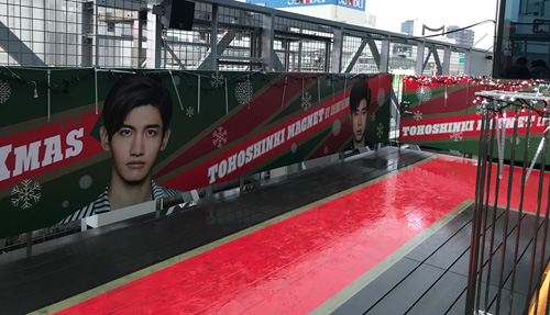エスカレーターの横の壁にもイベント告知の東方神起!!