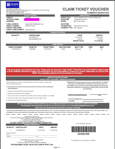 *SM STORES/EASTWOOD: Card Transactions- Please surrender the actual ticket to the branch where it was purchased. Cash Transactions- Kindly proceed to Mall of Asia Arena Box Office and surrender the actual tickets. Also, please be advised that for all card transactions, the reversal process may take 15-30 banking days.