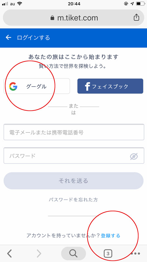 ticket.comに登録する際にもGoogleアカウントが便利