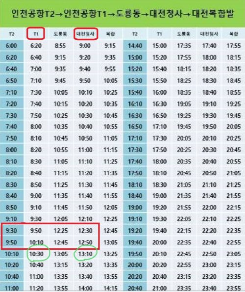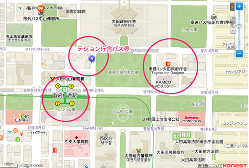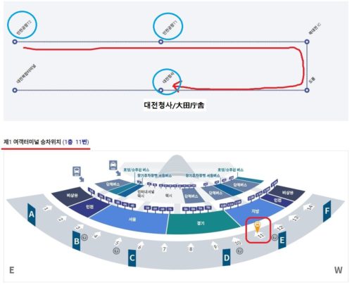●インチョン空港・金浦空港からリムジンバスで大田複合ターミナル(または大田政府庁舎)