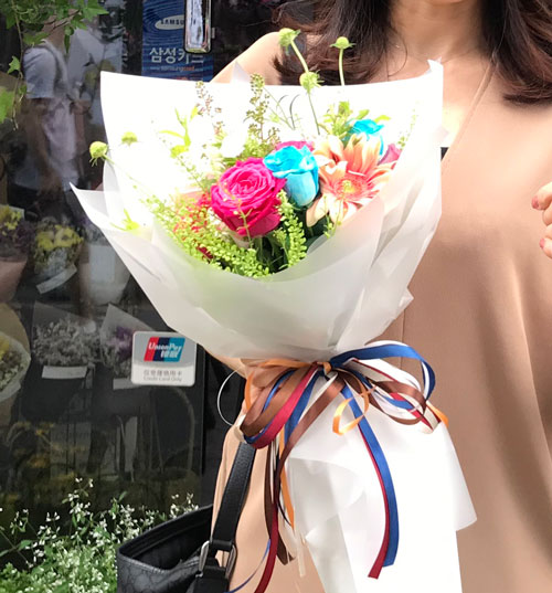 美容室が終わってからお花を受取に行きました。※お店にはリボンも沢山あってキレイにラッピングをしてくれます。