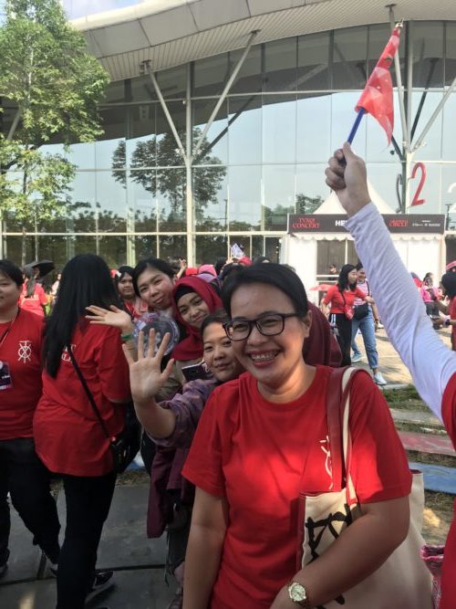 会場入口の広場はジャカルタカシちゃんたちでとにかく賑わっていて