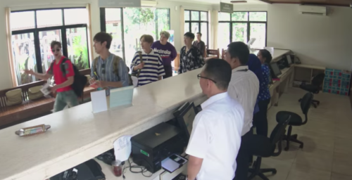 中に入って早速トイレを見つけて拍手喝采!!大股で向かうユノ。