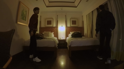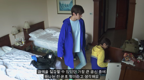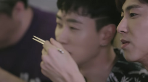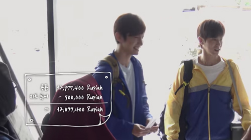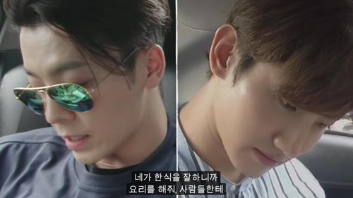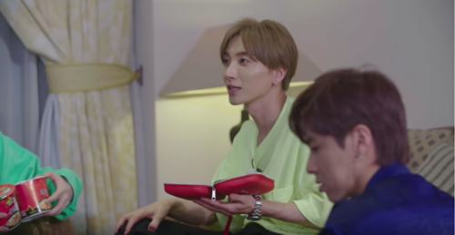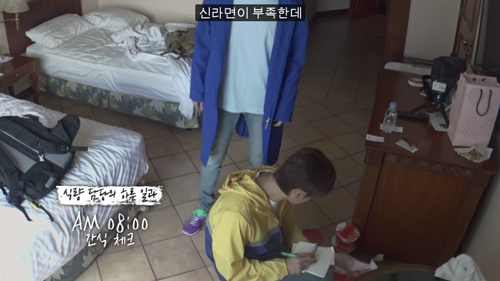 辛ラーメンの数をチェックするユノとそれを見つめるチャンミン。
