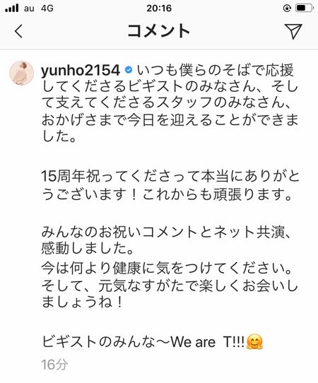 ユノがインスタアップしてくれた。