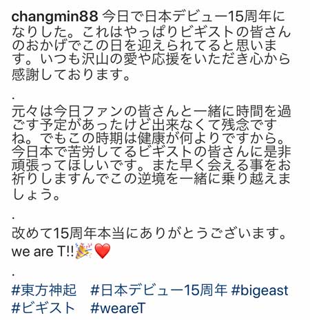 ユノとチャンミンのインスタ更新