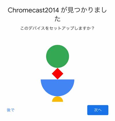●住所を入力後、Googleがクロムキャストを探して見つけます。