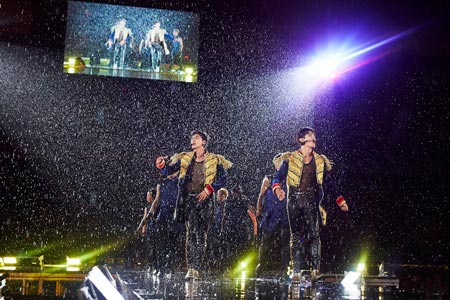 雨に濡れたステージは滑りやすく、躍りにくい環境にあったことは間違いない。しかし、彼らは手加減することなく、完璧なスタイルで全曲と向き合った。