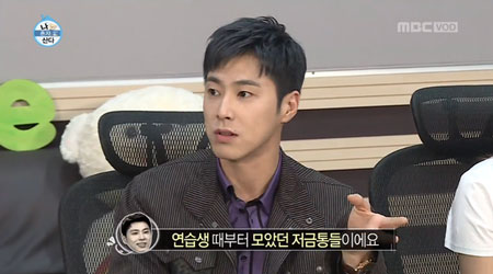若かりし頃のユンホもデスクに座り、このブタさんを抱えながら「これは僕が一番大切にしている物です」と紹介していました。