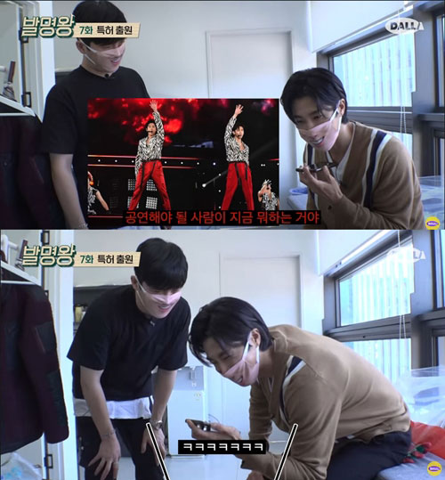 ユンホが早速ソン・ホジュンに電話をかけて「今『発明王』の撮影中だ」と伝えると、ソン・ホジュンは「そこのスタッフに感謝しなさい。彼らがどれだけ苦労しているか」と返した。加えて、ソン・ホジュンはユンホの電話で目が覚めたばかり。ユンホによる展示会の提案を眠たそうな声で断り、視聴者の爆笑を誘った。ユンホとソン・ホジュンは、長年の親友だ。
