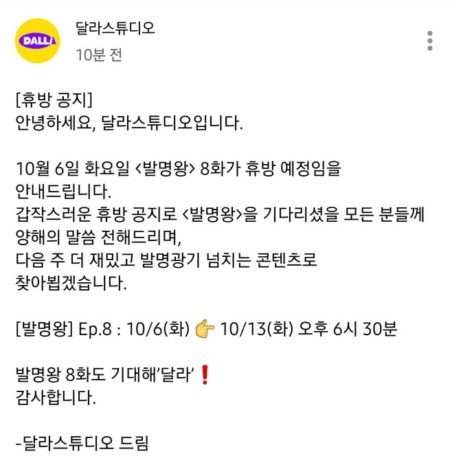 10月6日火曜日<発明王>8話がお休み予定であることをご案内申し上げます。