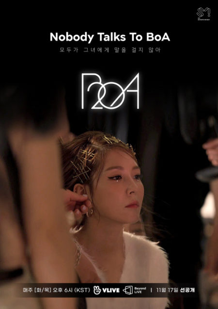 BoAの新リアリティー番組『Nobody Talks To BoA-みんなが彼女に話しかけない』は、11月17日からV LIVE(NAVERのライブ配信サービス)のBeyond LIVEチャンネルで先行公開され、11月28日からNAVERTV SMTOWNとBoAの公式YouTubeチャンネルで公開される。