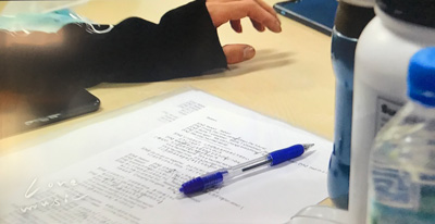 と言いながら歌を練習するユノの前に置かれた歌詞は