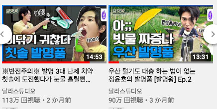 幼かった時代には小さなアイディアが世の中を変えられるとよく思ったりしたが、運よく除隊後、特許証を出せたし、<発明王>も親友と一緒に出演出来て発明という素材を気軽に披露することが出来てよかった。