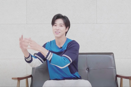 手形製作中!!!とにかく、左側からそっと手を添えるスタッフさんの手が気になって気になって(・・;)ユノにしてみれば男性スタッフに添えられるよりは絶対女性スタッフの方がいいだろうし…あっ!!!補佐官のシニョンさんなら全信頼を寄せてるから許せるなぁ〜(笑)このカットは見逃せません!!!!!