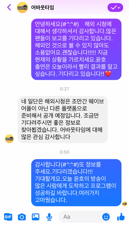 今日のユンホの放送がたくさんの人に届いて、番組が成功するように祈っています。