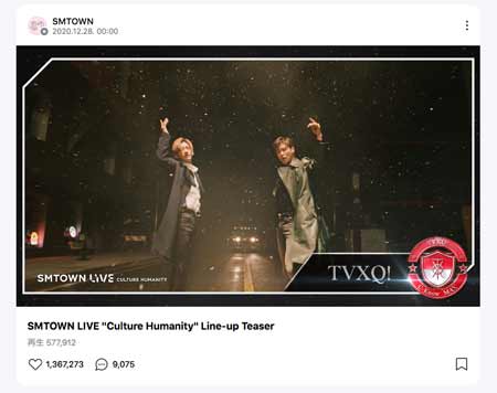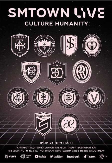 「SMTOWN LIVE」Culture Humanity」「(SMタウンライブ」カルチャーヒューマニティ」)は、2021年1月1日午後1時(韓国時間)からネイバーV LIVEのBeyond LIVEチャンネルをはじめ、YouTube、ツイッター、フェイスブック、ティクトク、日本のKNTVなど各種プラットフォームを介して中継されて、全世界のファンたちの耳目をひきつける展望だ。