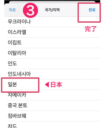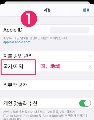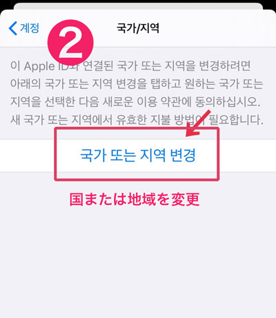 ⑳국가 또는 지역을 변경(国または地域を変更)