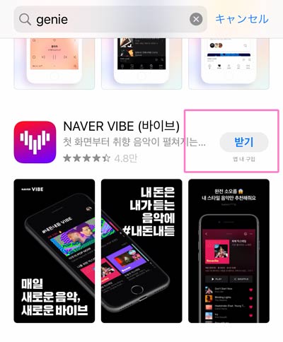 ④検索窓にダウンロードしたいアプリ名を入力(例:NAVER VIBE)