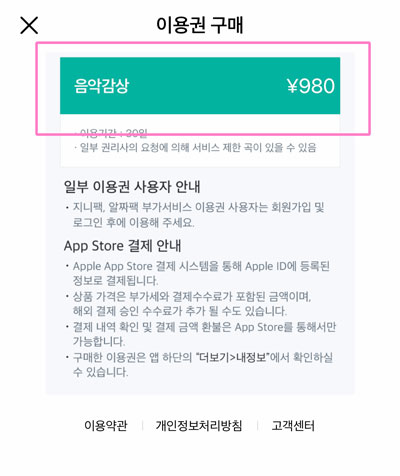 ⑭30日聞き放題のチケット購入…¥980をタップ